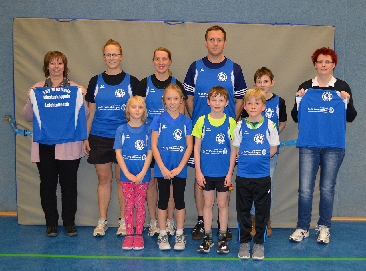 Seit Ende des letzten Jahres kann sich die Leichtathletikabteilung von Westfalia Westerkappeln über 20 neue Trikots freuen. Nun können die Leichtathleten, von jung bis alt, wieder einheitlich auf Wettkämpfen auftreten und ihr Können unter Beweis stellen. Teilweise gesponsert werden die neuen, blauen Trikots vom Lohnunternehmen F.-W. Wienkämper aus Wersen. Während die Trainer Werner Korte und Meike Diekmann im Vordergrund intensive Arbeit leisten, um großen und kleinen Westerkappelnern die verschiedenen Facetten der Leichtathletik beizubringen, wird auch im Hintergrund wichtige Arbeit verrichtet. Mit ihrem enormen Einsatz im Hintergrund hält Spartenleiterin Nicole Buchwald alle Fäden zusammen und war auch, als es um die Anschaffung der neuen Trikots ging, direkt Feuer und Flamme.