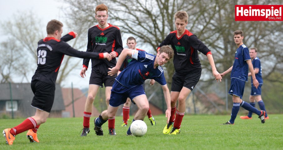 Hier behauptet Patrick Kroog den Ball gekonnt gegen drei Gegenspieler, Foto: Heimspiel Online