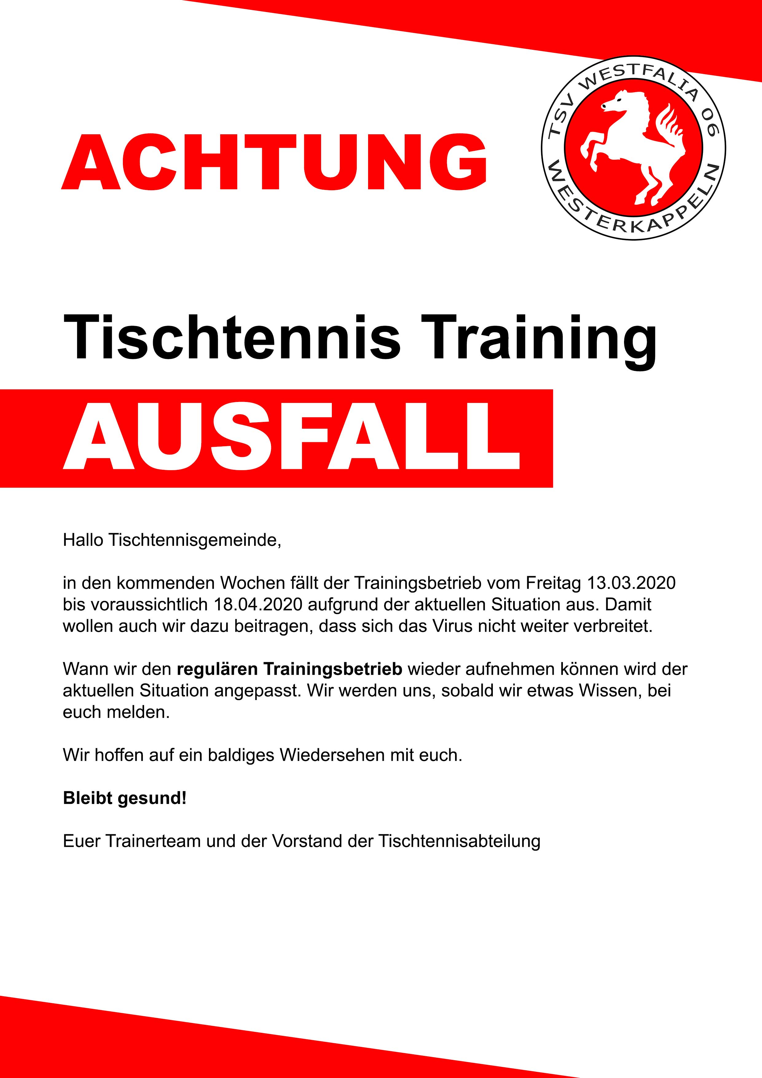 TT: Kein Sportbetrieb in den nächsten Wochen