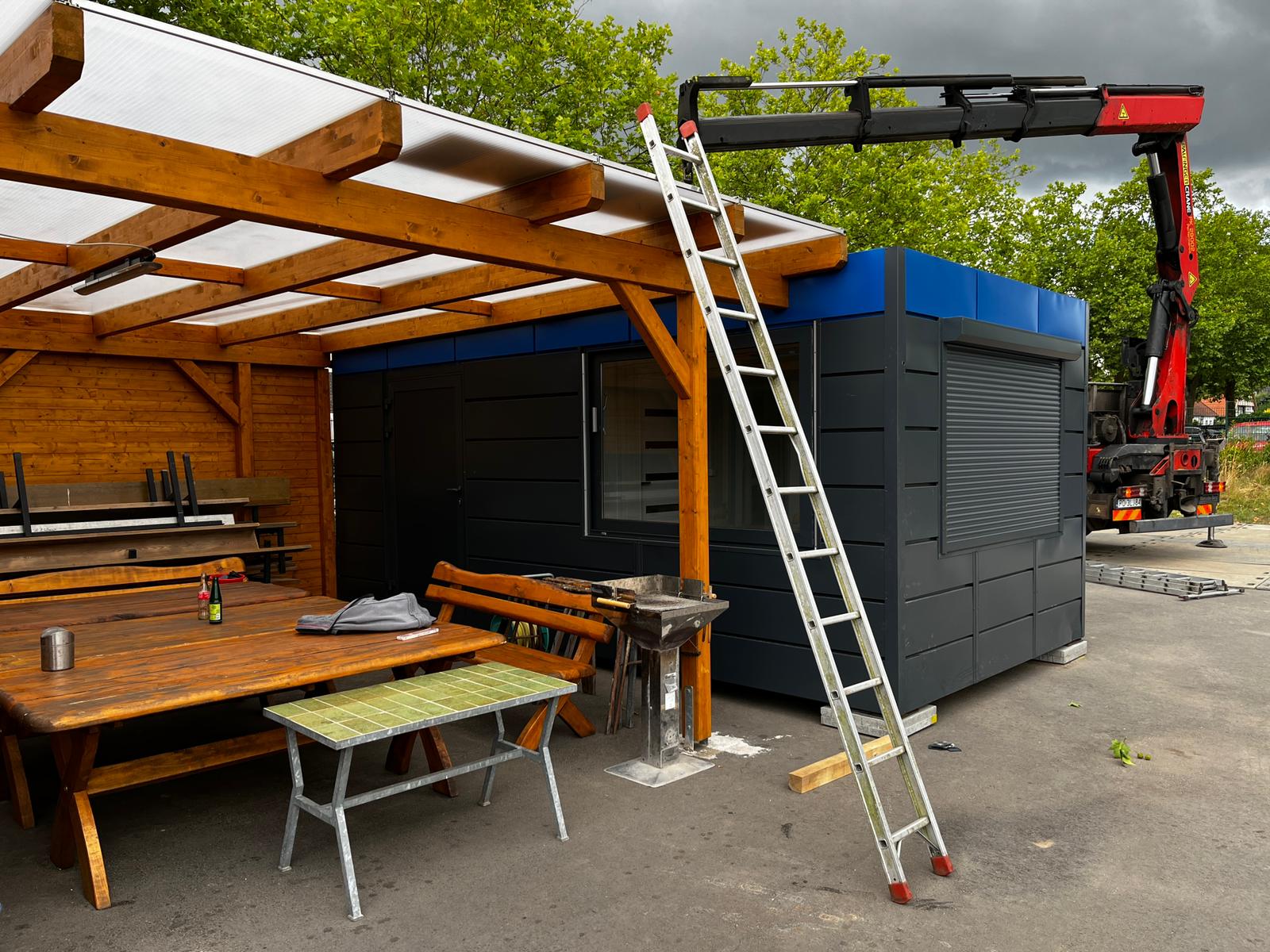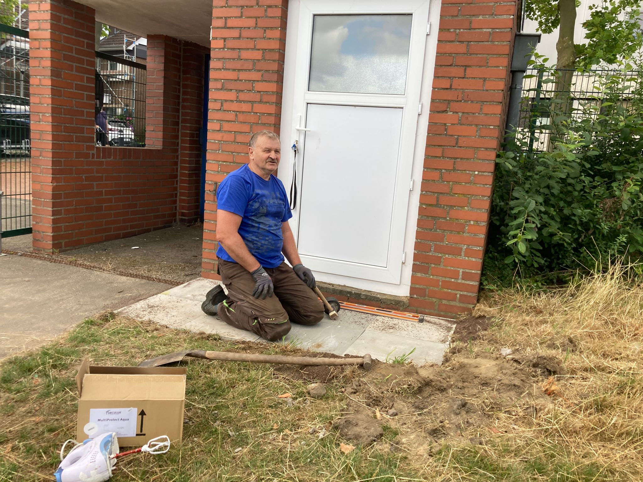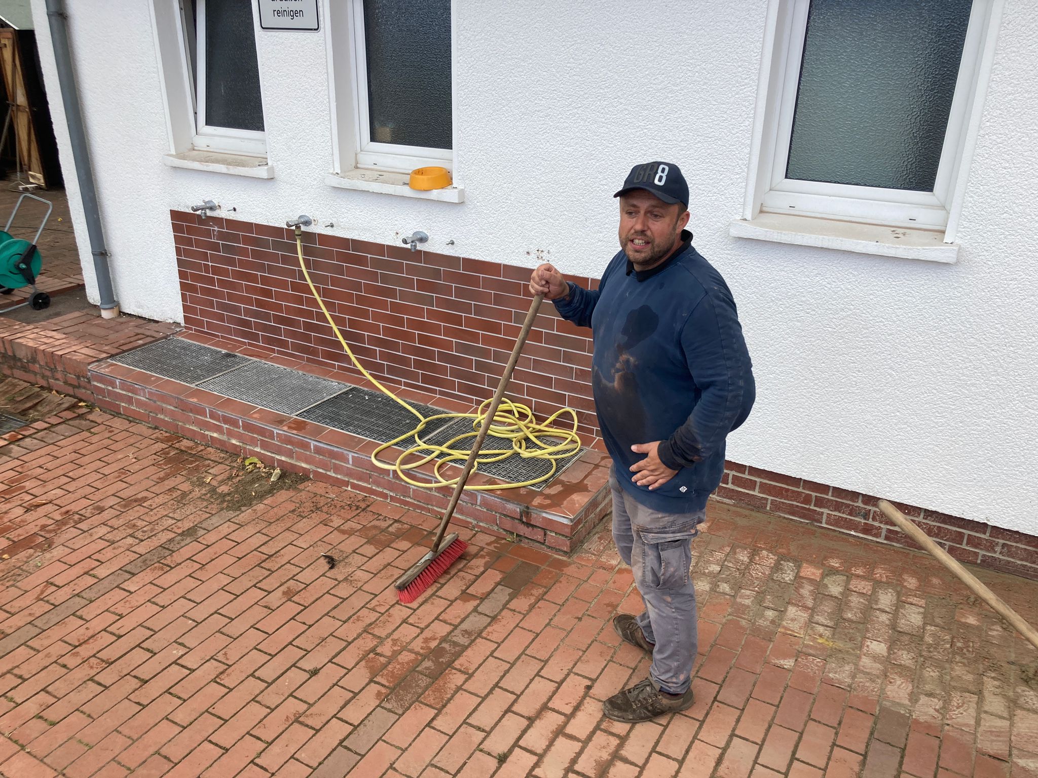 Angefangen wurde im August 2021 z.B. mit dem Reinigen der Dachrinnen des Clubheimes und der Umkleidekabinen im Hanfriedenstadion. Einen Monat später wurde der Kiosk am