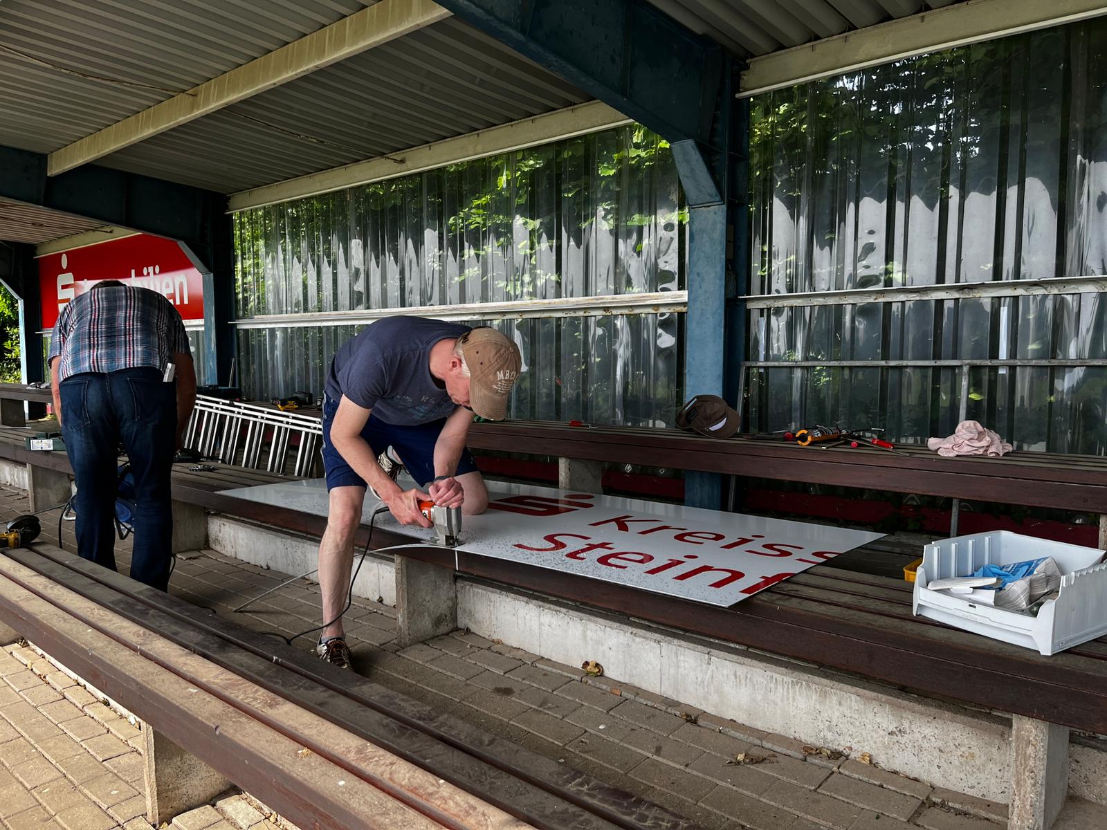 Instandsetzungsaktivitäten der Trainerbänke im Stadion und am Kunstrasenplatz nach dem