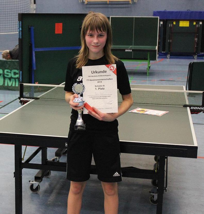 Die Schüler des TSV Westfalia Westerkappeln haben am vergangenen Freitag die neuen Vereinsmeister ausgespielt. In der A-Klasse konnte Maria Zer ihren Vorjahreserfolg wiederholen und kürte sich ungeschlagen zur Vereinsmeisterin. In der B-Klasse könnte sich Luca Principato durchsetzen und seinen ersten Pokal gewinnen.