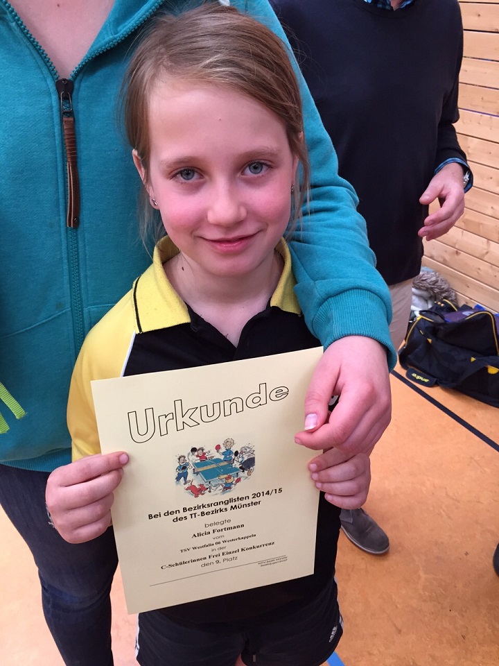 Bei den C-Schülerinnen (Stichtag 01.01.2005) gab die neunjährige Alicia Fortmann ihr Debüt für die Westfalia. Zwar konnte sie keinen Sieg einfahren, lieferte sich bei ihrem ersten Turnier jedoch ein paar schöne Spiele. Zwei Partien gingen knapp mit 2:3 verloren, so dass eine bessere Platzierung als Rang neun nicht herausspringen sollte.
