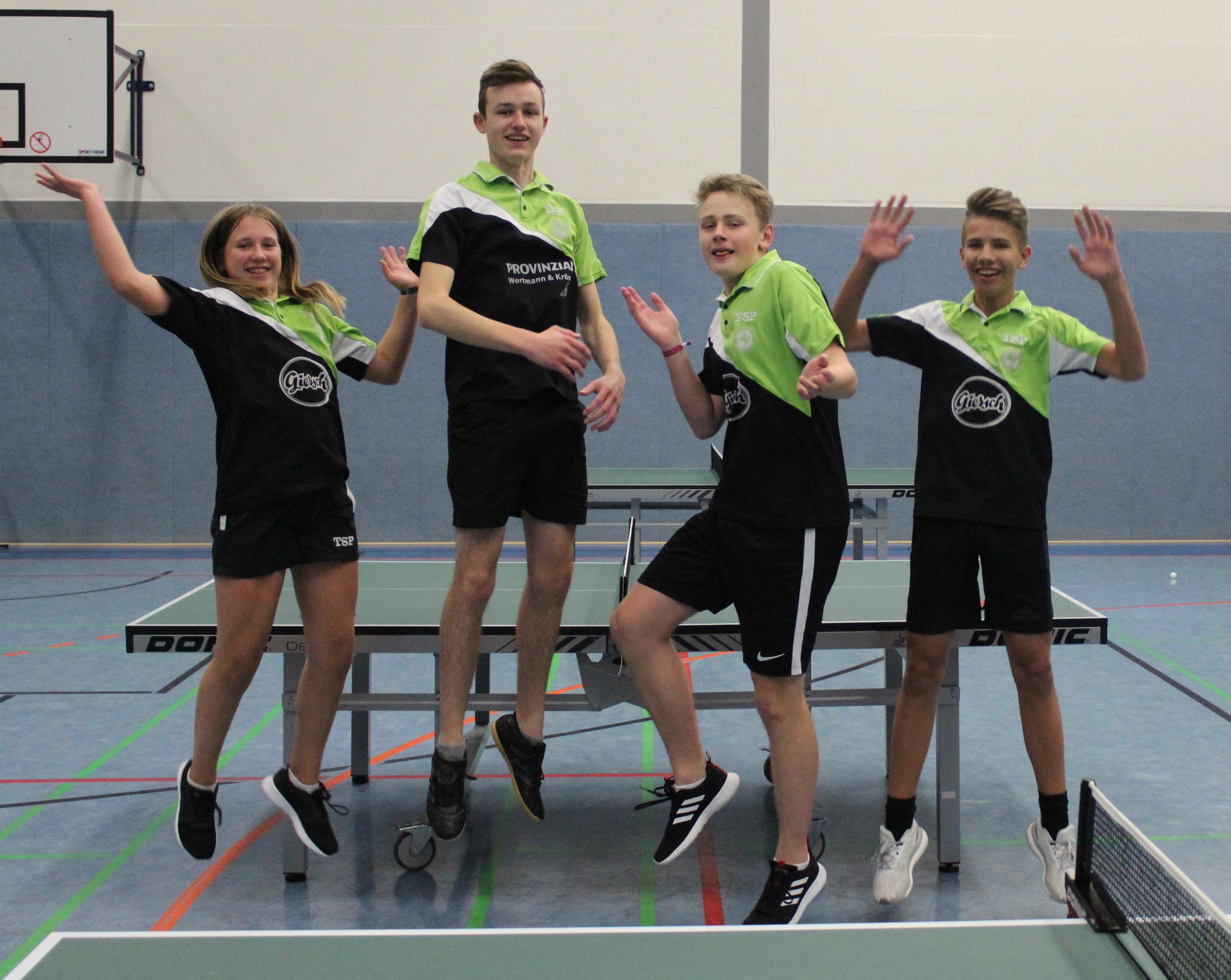 hintere Reihe v. l.: Adrian Diekmann, Raphael Philippsen, Cinja Winkler, Finn Peters; hockend v. l.: Tom Zimmerling; Adrian Hoffmann, Maria Hoffmann; es fehlt: Christian Hoffmann