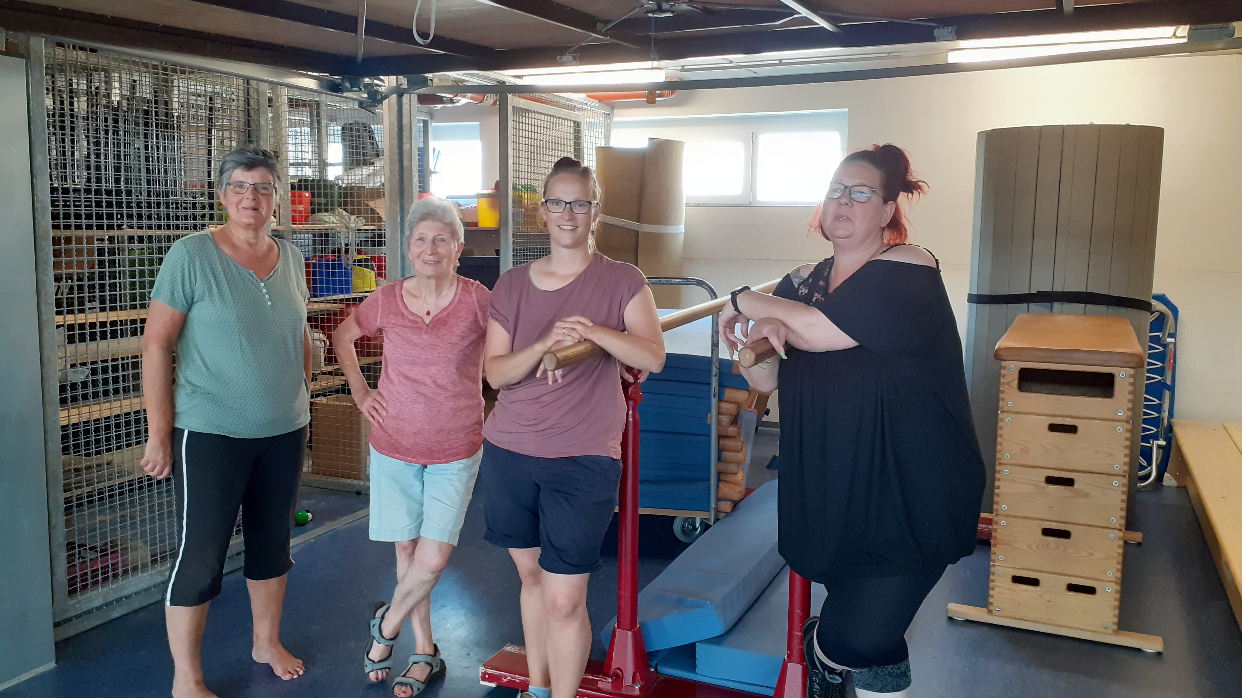 Kurz vor Beginn der Sommerpause sind einige Überungsleiter und Trainer der Turn- und Leichathletikabteilung nochmal richtig aktiv geworden und haben die Geräteräume in der Zweifachsporthalle auf Vordermann gebracht. Annelen Diekmann (2.v.r.), die seit Frühjahr 2022 Doris Bettenbrock als Abteilungsleiterin nachgefolgt ist, freut sich über diesen Arbeitseinsatz. Hier wurde nicht nur alles wieder an den rechten Fleck geräumt, sondern auch Materialien, die nicht mehr in Ordnung waren aussortiert und wiederum neue Materialien geordert. So freuen sich Gymnasikbälle, Hanteln, Startblöcke, Seilchen und Co. darauf, ab Ende Juli 2022, wenn die Zweifachhalle wieder geöffnet ist, von Jung und Alt genutzt zu werden. Und Jung und Alt ist hier Programm. Die Jüngsten (2-4 Jahre) flitzen mit ihren Eltern in der Mutter-Vater-Kindturnen-Gruppe von Übungsleiterin Sandra Cattonar durch die Halle. An verschiedenen Geräteaufbauten wird geklettert, gesprungen, geschaukelt, balanciert und vieles mehr.